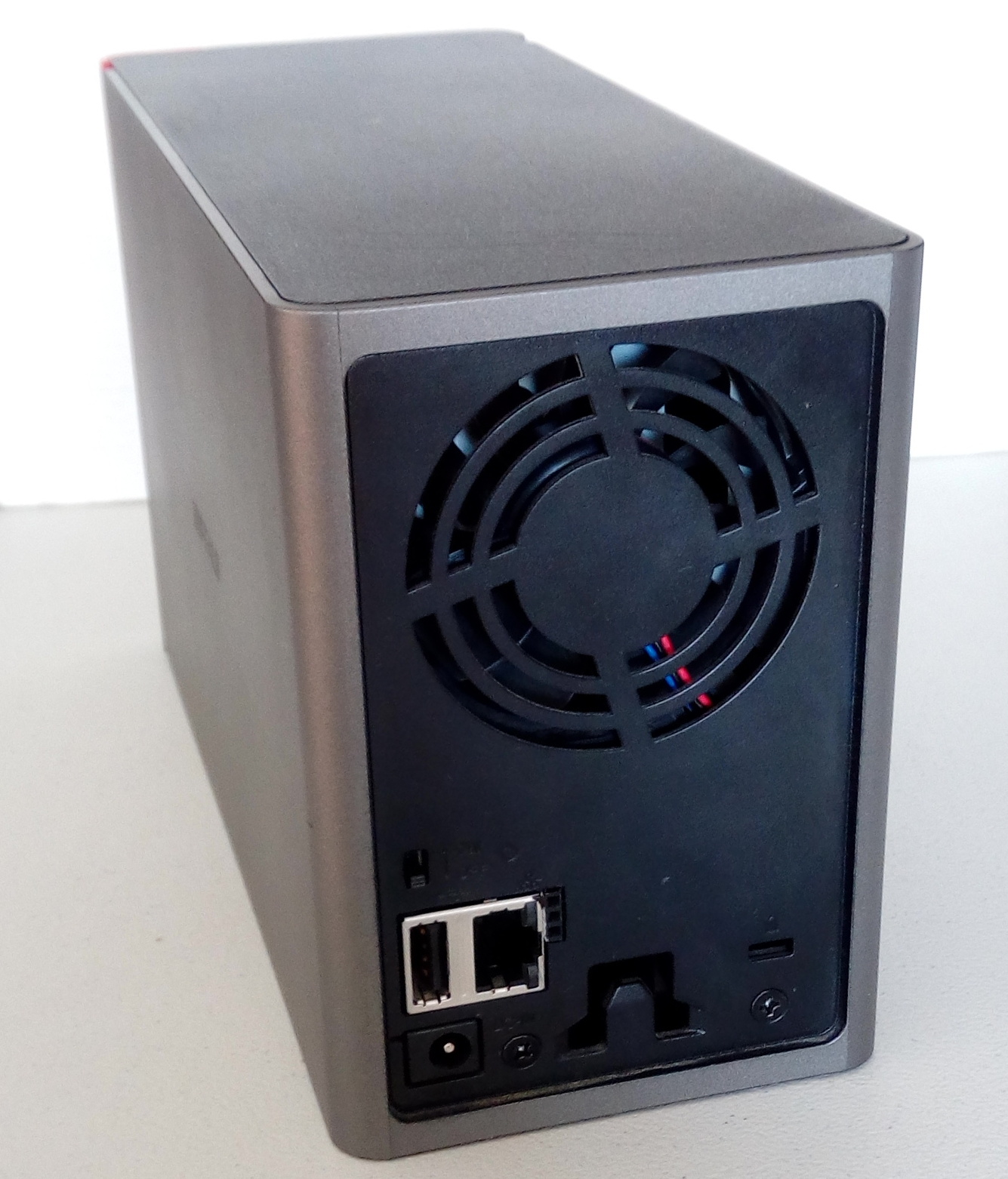 This is a low-cost dual-port SATA NAS box. It comes with one 1GbE network port, one USB 2.0 host port on the back and one USB 3.0 on the front.