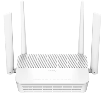 The Cudy WR3000S is a Wifi6 Router with 1x WAN and 4x LAN Gigabit Ports build around 64-bit Cortex-A53 SoC (Filogic 820 1,3GHz dual-core processor). It has a small form factor and 4 antennas.