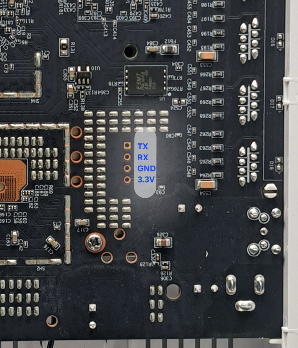 | Serial connection parameters for Cudy WR3000S v1 | 115200, 8N1, 3.3V |