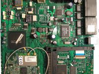 | The RAM and the flash chip are located under the minipci. For this mod you'll need two RAM chips 32 MiB each one. Note this board uses SDR, and each chip is 16bit bus width. Check datasheets before choosing a suitable RAM chip. |